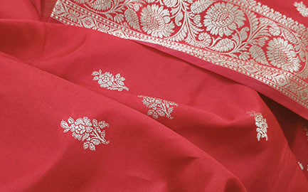 Color: Coral Red, Golden Zari