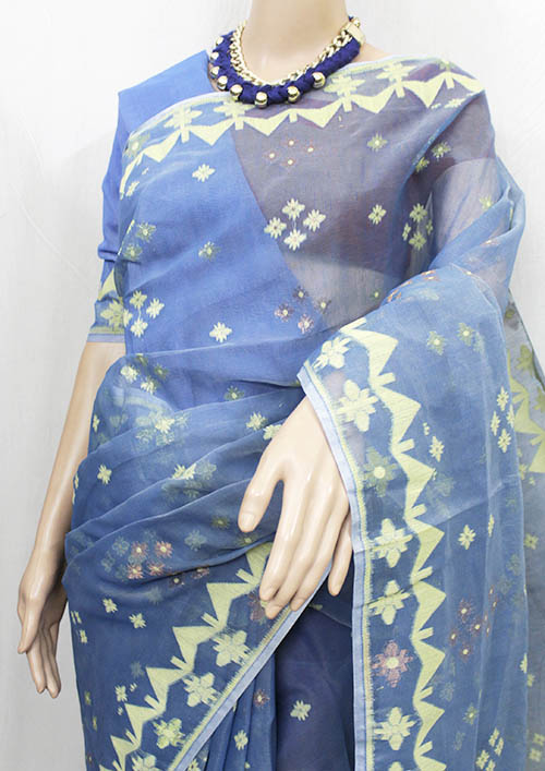 Deep-Sky-Blue Jamdani Saree (TD0728)